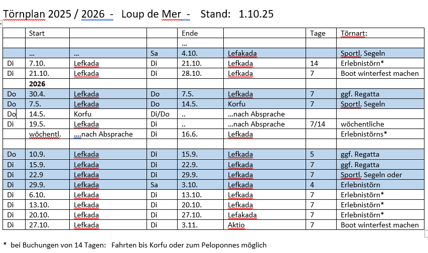 Platz für bis zu 10 Personen. Aber am Liebsten sind wir mit kleiner Crew unterwegs,